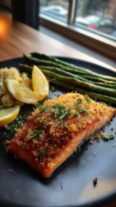 This Parmesan Crusted Salmon is a weeknight dinner hero that feels fancy but comes together in minutes. The savory crust of Parmesan, breadcrumbs, and herbs bakes into a golden, crispy shield over tender, flaky salmon. It’s an elegant, restaurant-worthy dish with minimal effort.